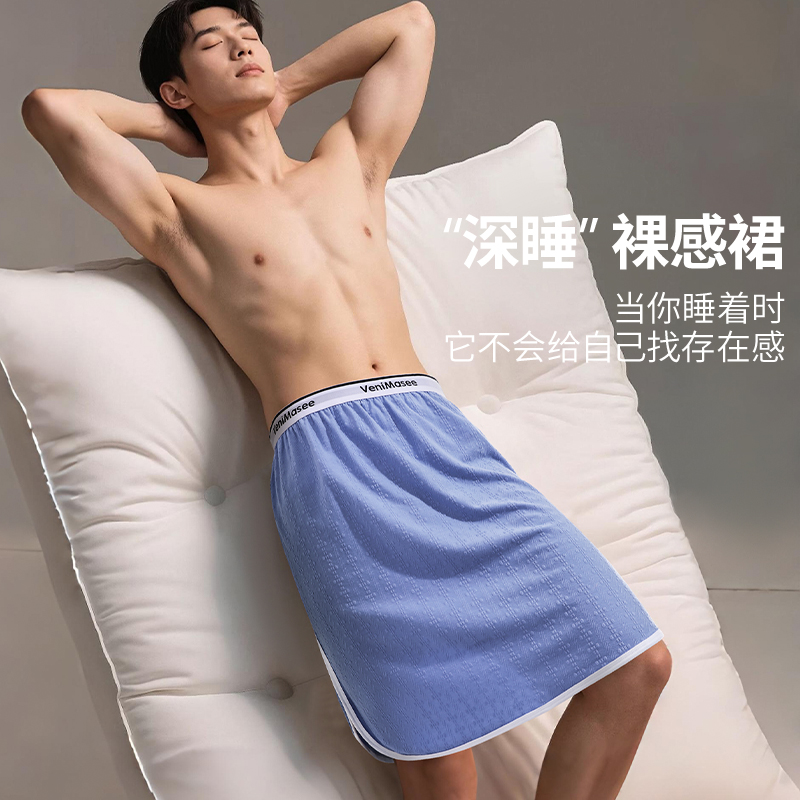 过膝睡袍裸睡神器全棉浴袍 纯棉睡裙秋冬宽松一体睡衣长款 男士 长袖