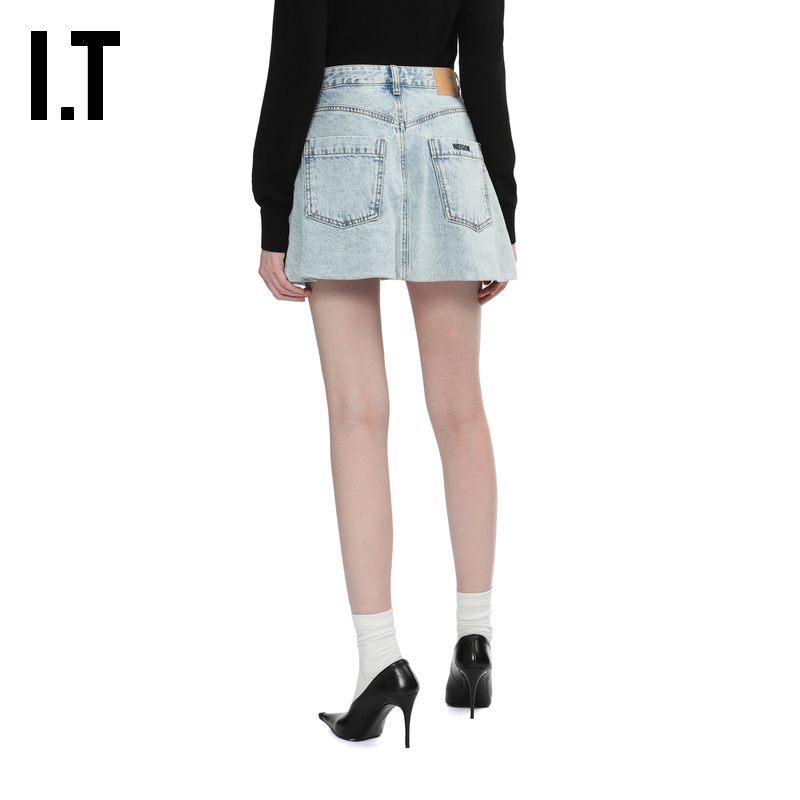 青春甜辣水洗磨白A字裙短裙381WSK 牛仔半身裙新款 We11Done女装