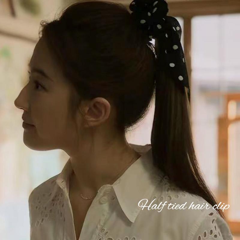 玫瑰 黄亦玫蝴蝶结波点发夹女小抓夹高级感鲨鱼夹 故事刘亦菲同款