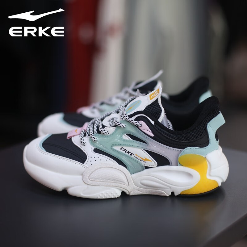 皮面防水减震软底休闲老爹鞋 秋季 女士 弜弹科技女鞋 鸿星尔克运动鞋