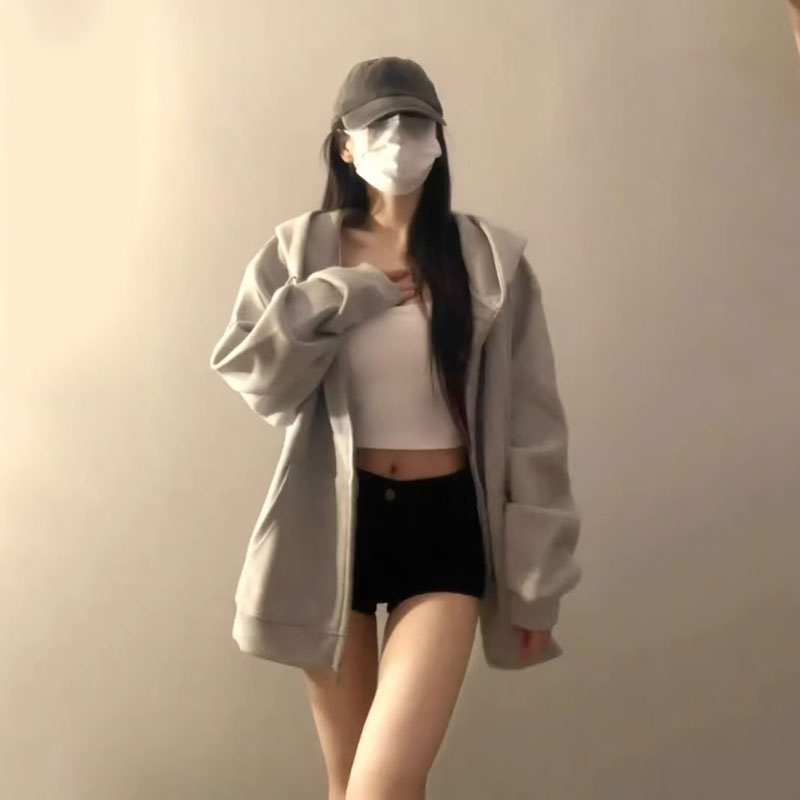 连帽卫衣女春秋oversize薄款 外套宽松韩系慵懒chic风上衣 拉链开衫