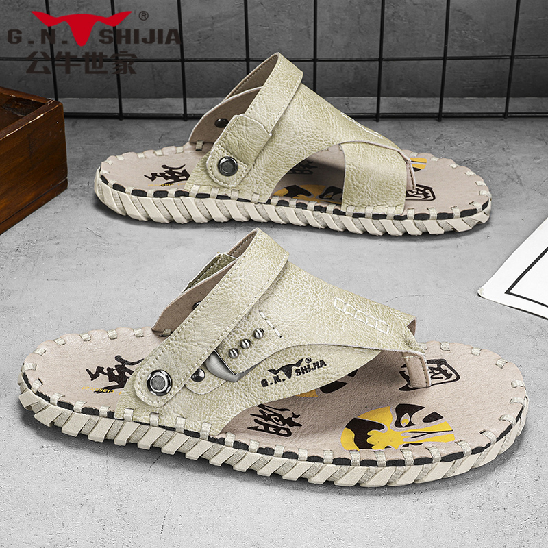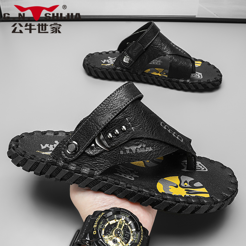 透气防臭休闲人字拖真皮防滑凉鞋 新款 人字拖2024夏季 公牛世家男士