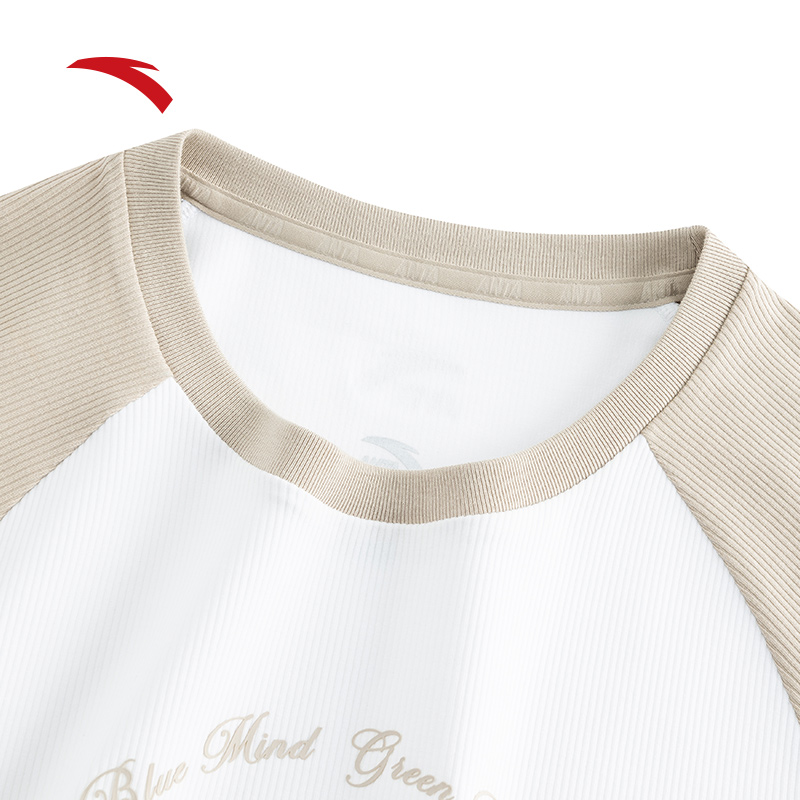 新款 t恤女子夏季 显瘦插肩休闲上衣162528102 短袖 安踏复古撞色修身