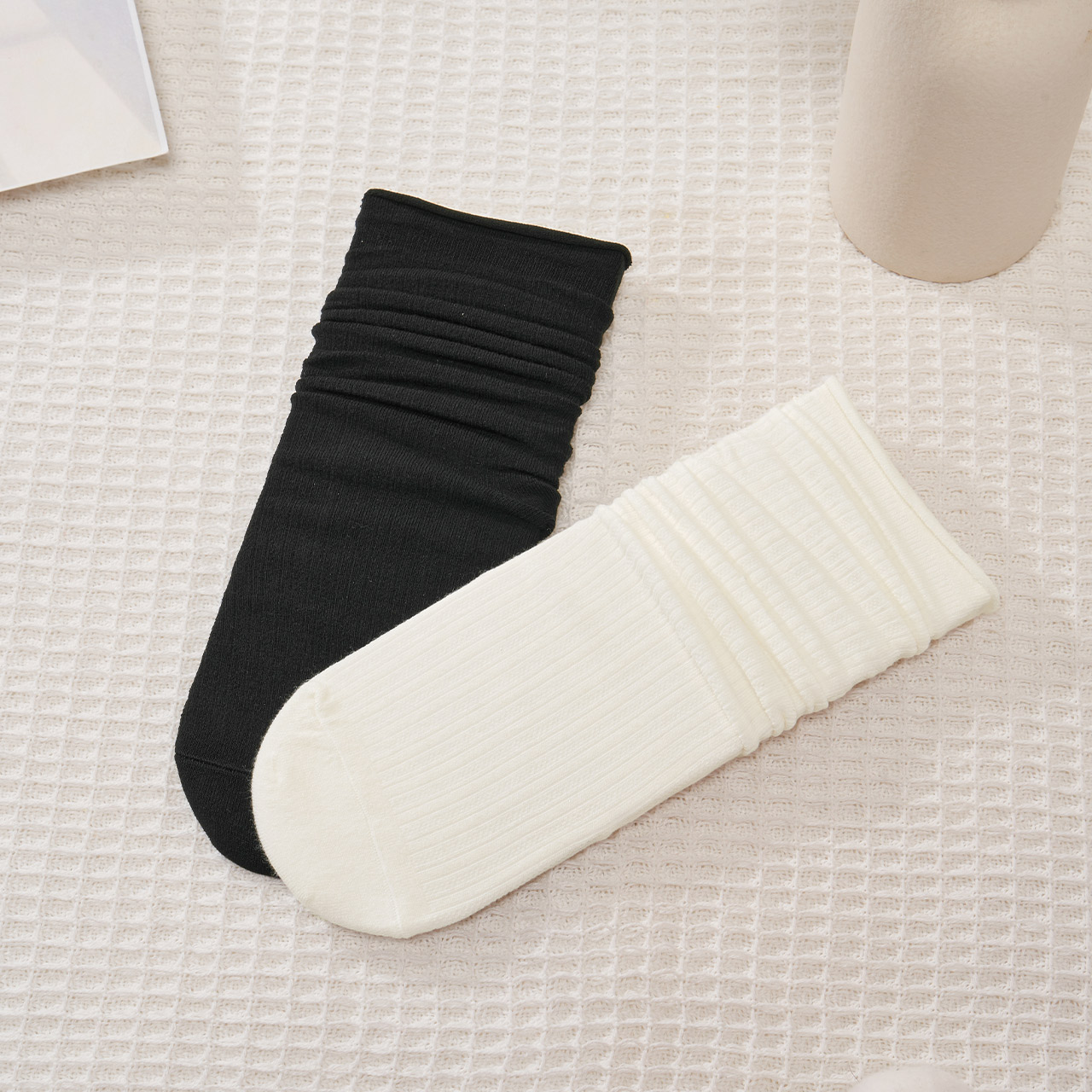 帕兰朵袜子女中筒袜春秋季 棉袜吸汗透气纯色百搭堆堆袜防臭长筒袜