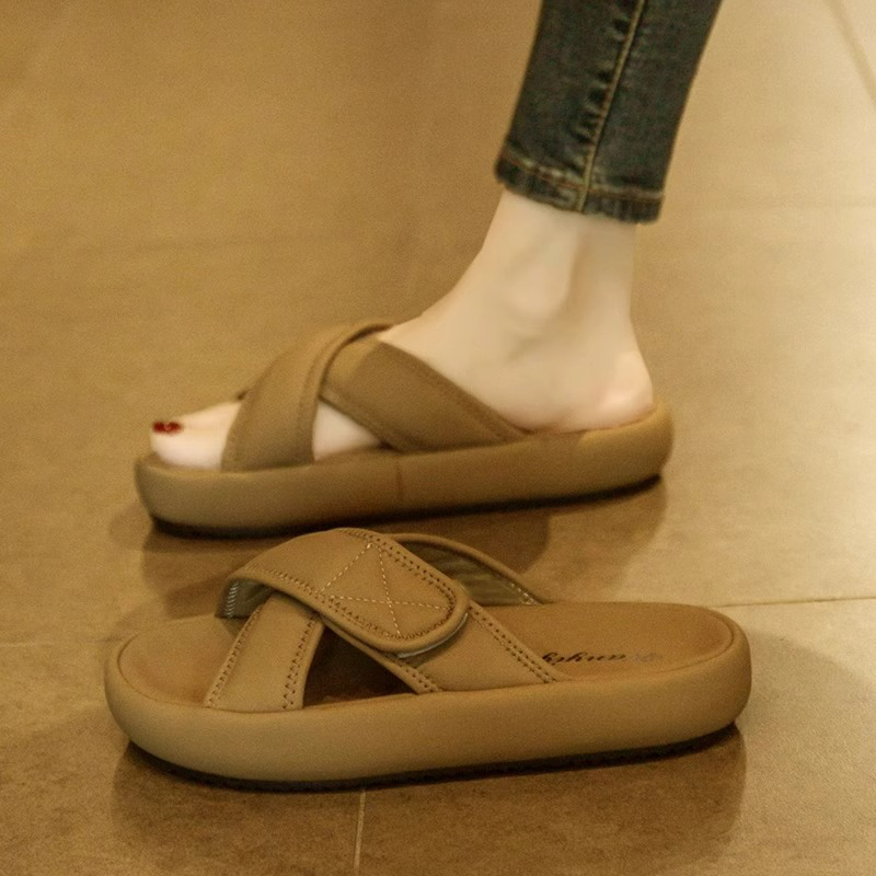 女士孕妇面包一字拖夏2025 外穿休闲沙滩时尚 防滑凉拖鞋 女厚底新款
