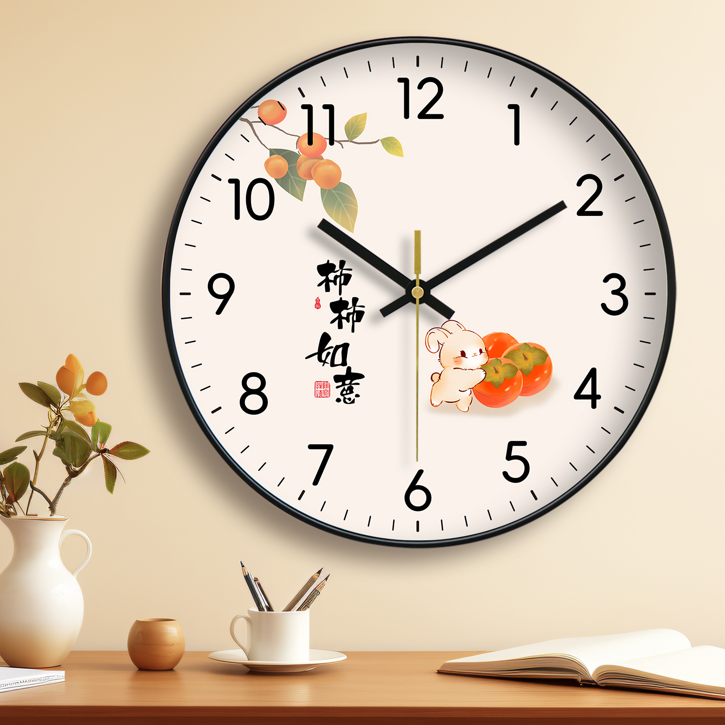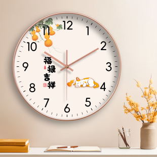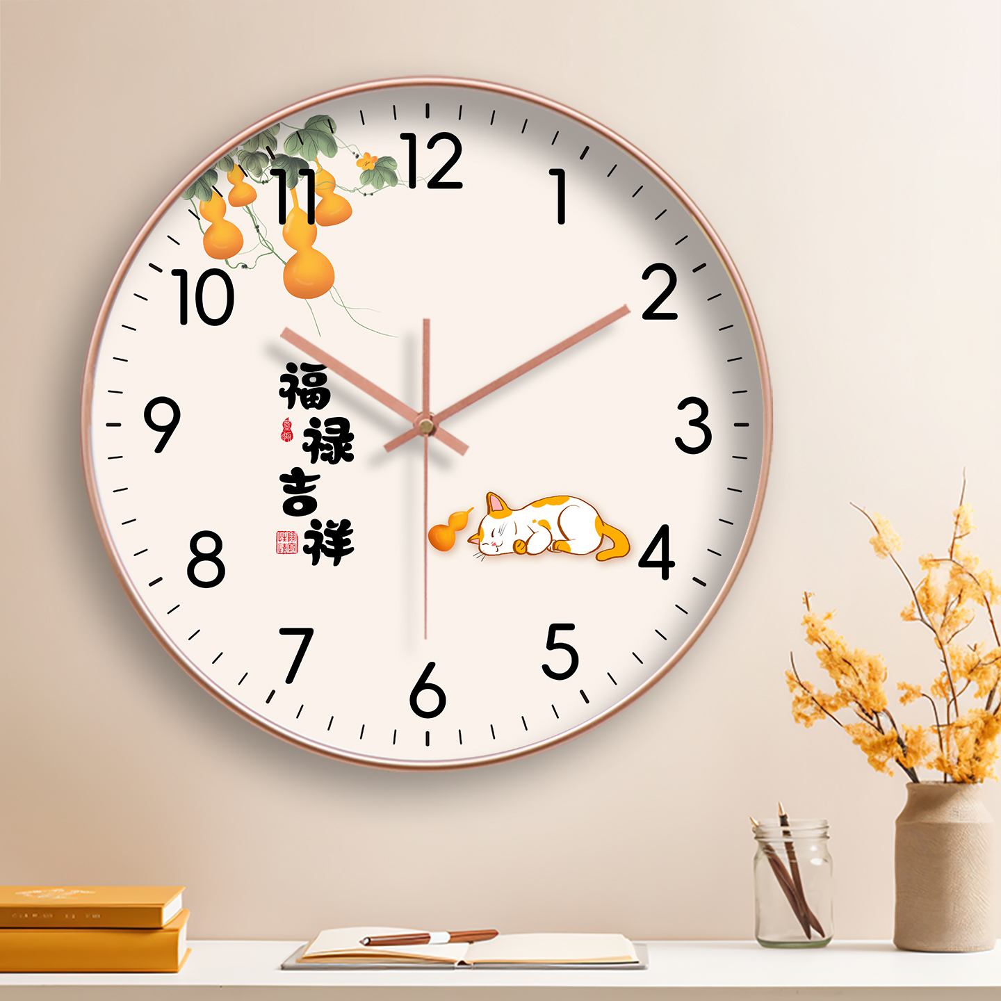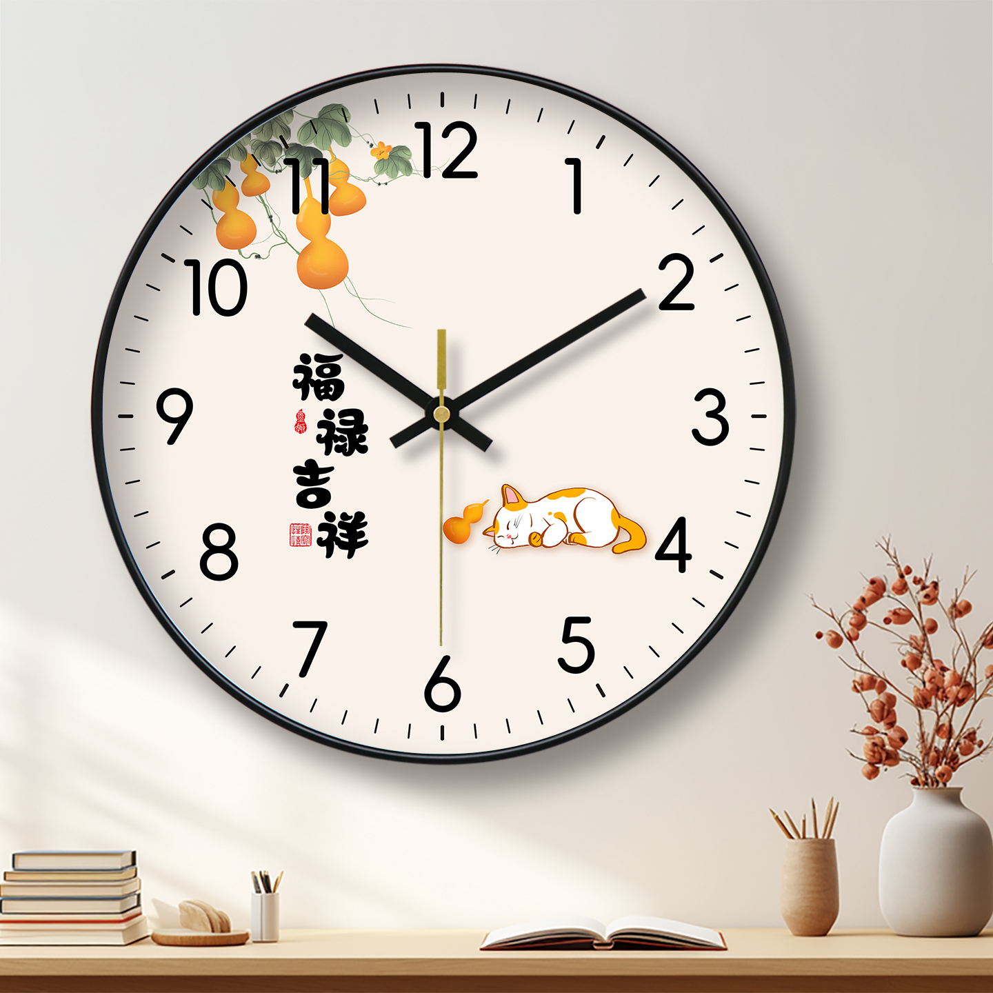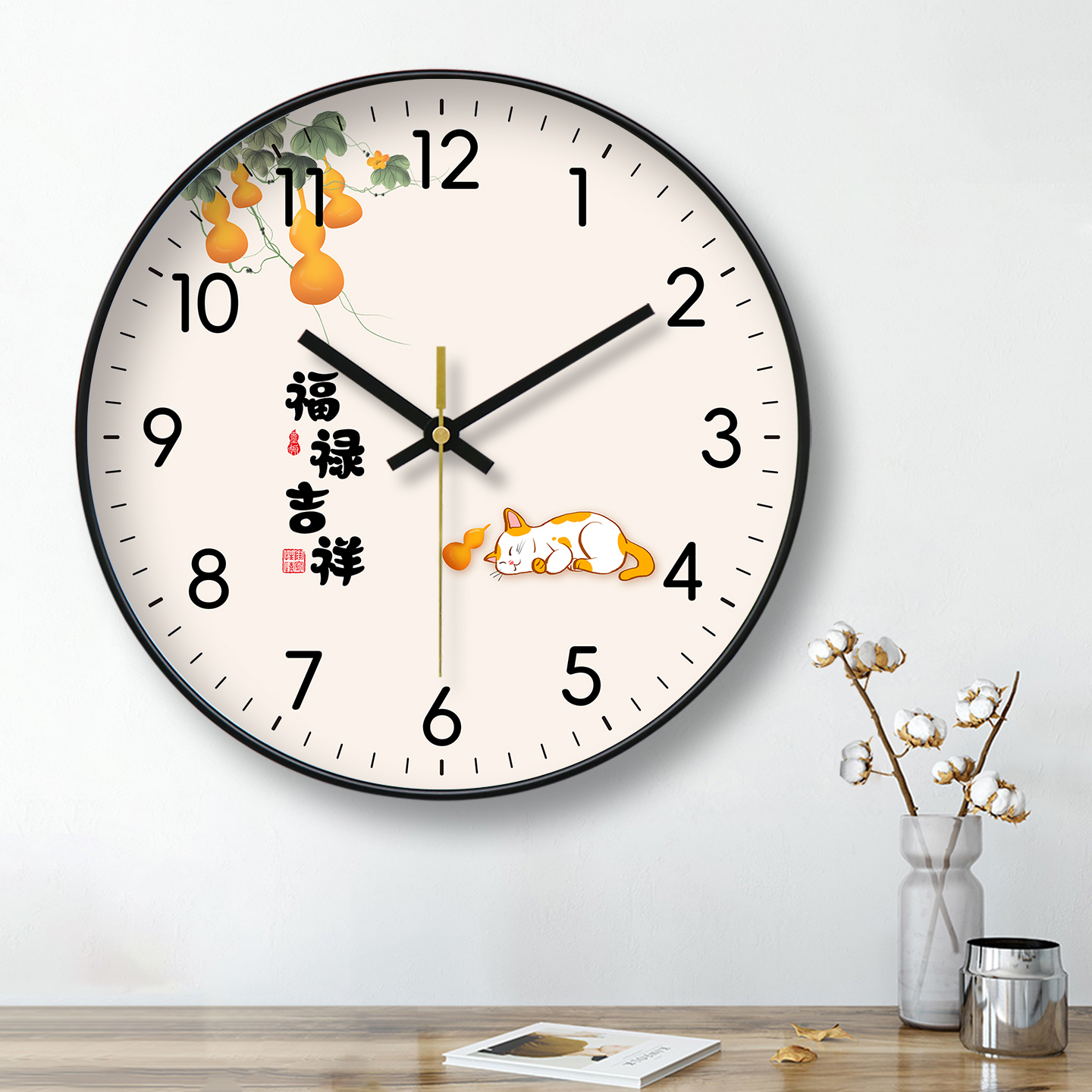 挂钟钟表简约家用客厅装 饰画事事如意福禄好免打孔时钟挂表石英钟