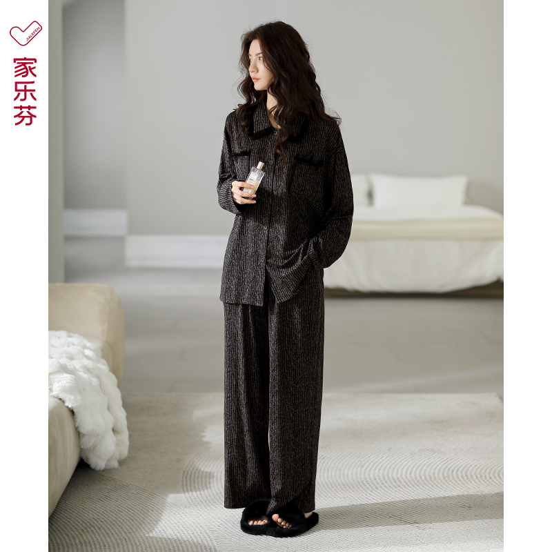 冰丝薄款 家乐芬睡衣女春秋款 家居服夏季 莫代尔长袖 黑色高级感 秋季