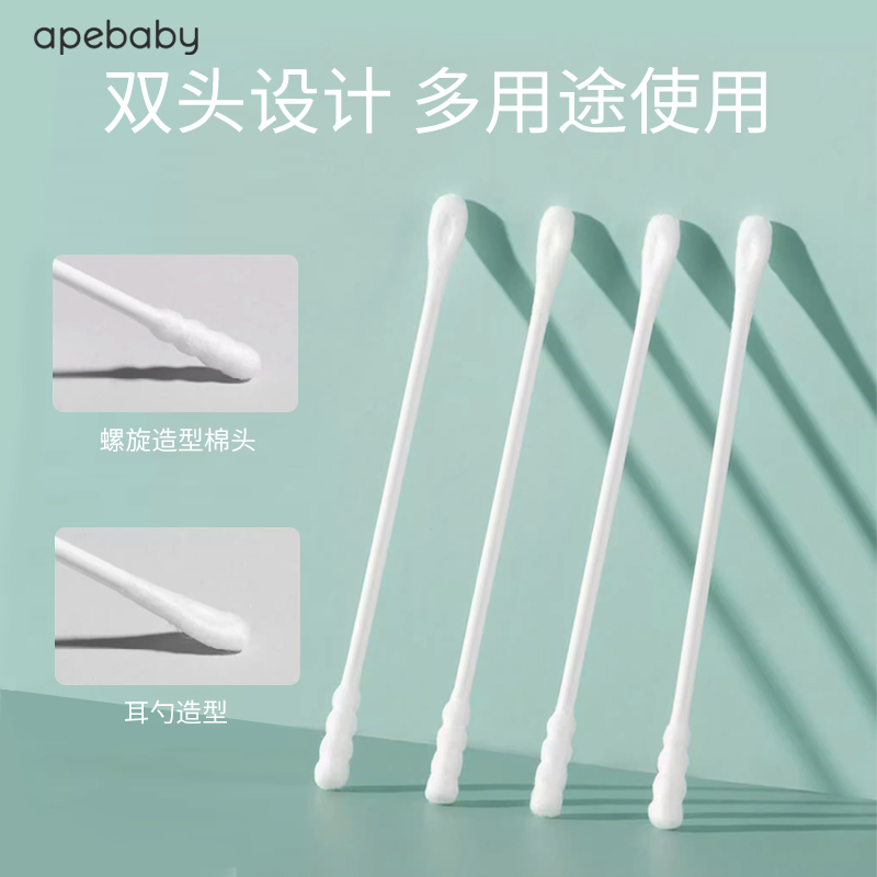 右二猿婴幼儿童棉签掏耳朵宝宝专用棒超细双头挖耳勺新生儿童鼻屎