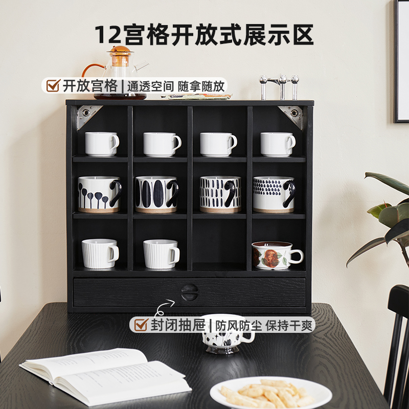爱必居实木桌面杯架壁挂墙上格架咖啡杯展示架桌上置物架家用搁架