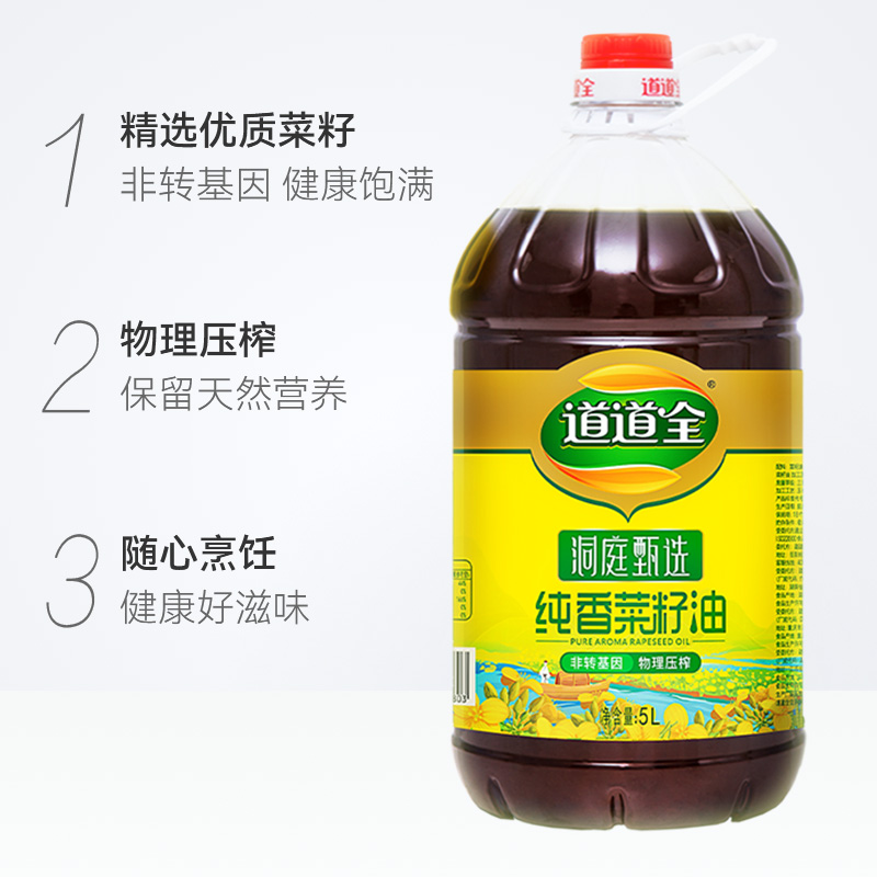 道道全洞庭甄选纯香菜籽油5L非转基因物理压榨 香味纯正食用油