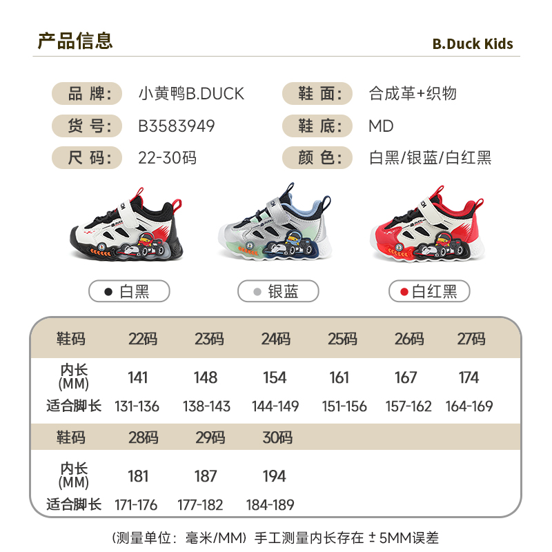 网面宝宝鞋 bduck小黄鸭童鞋 儿童亮灯发光鞋 2025秋季 子 男童运动鞋