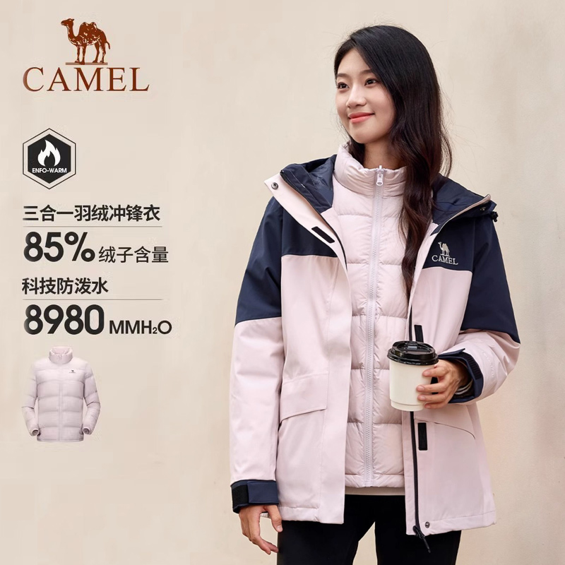 羽绒内胆防水外套 三合一冲锋衣两件套中长款 骆驼羽绒服女冬季 新款