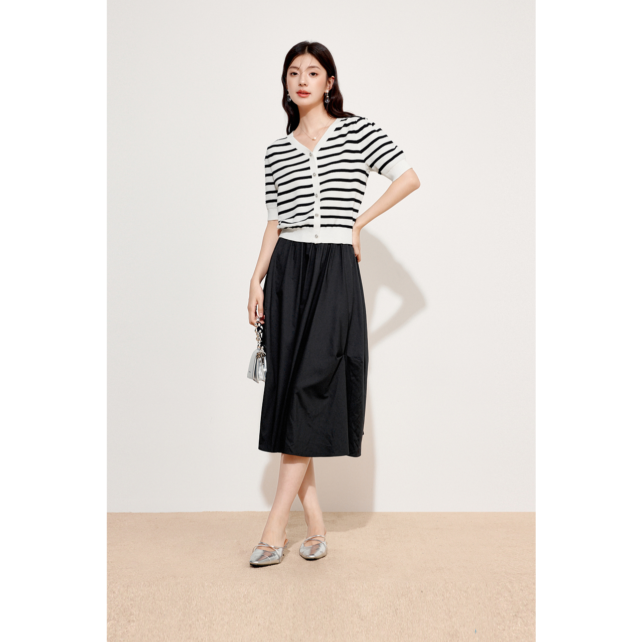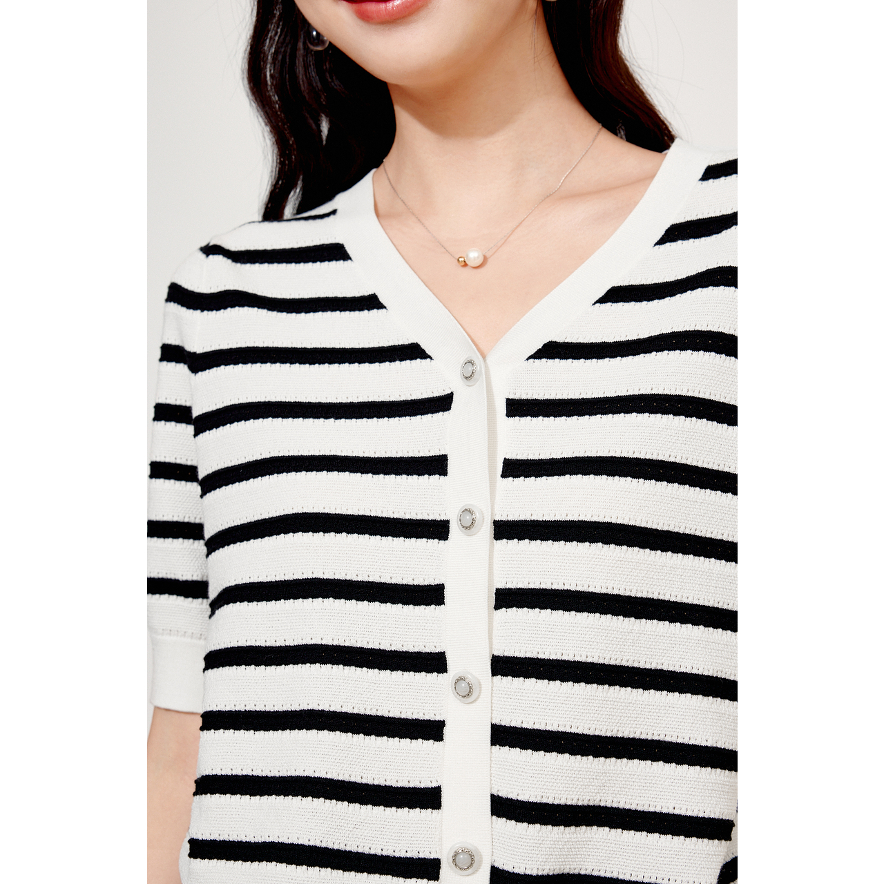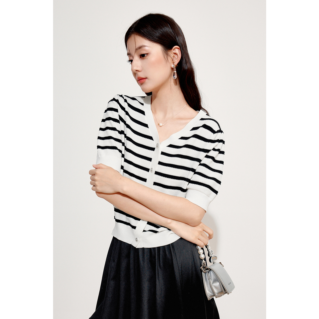 2024秋新款 诗凡黎白色V领莱赛尔针织开衫 3F7231891 商场同款