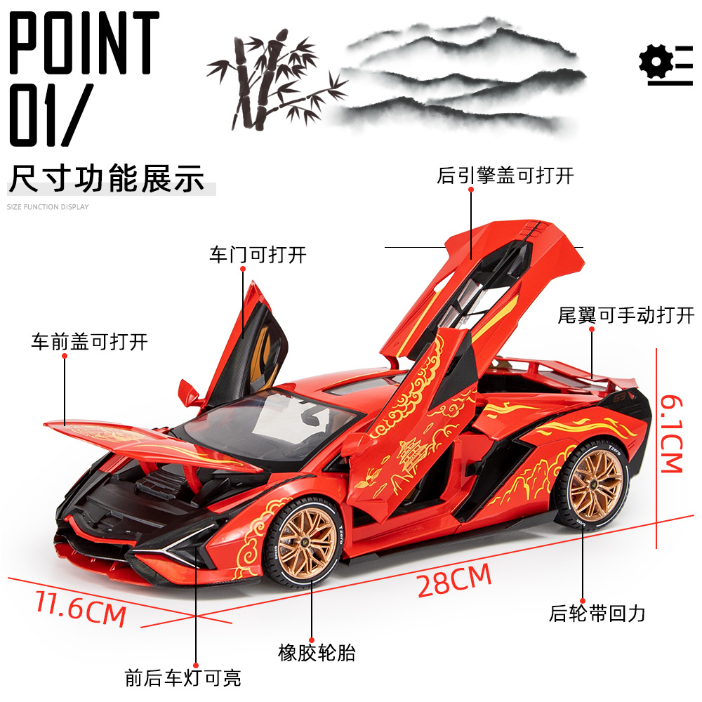 铠威1 仿真大比例合金车模型声光回力儿童玩具车 18兰博闪电国潮版