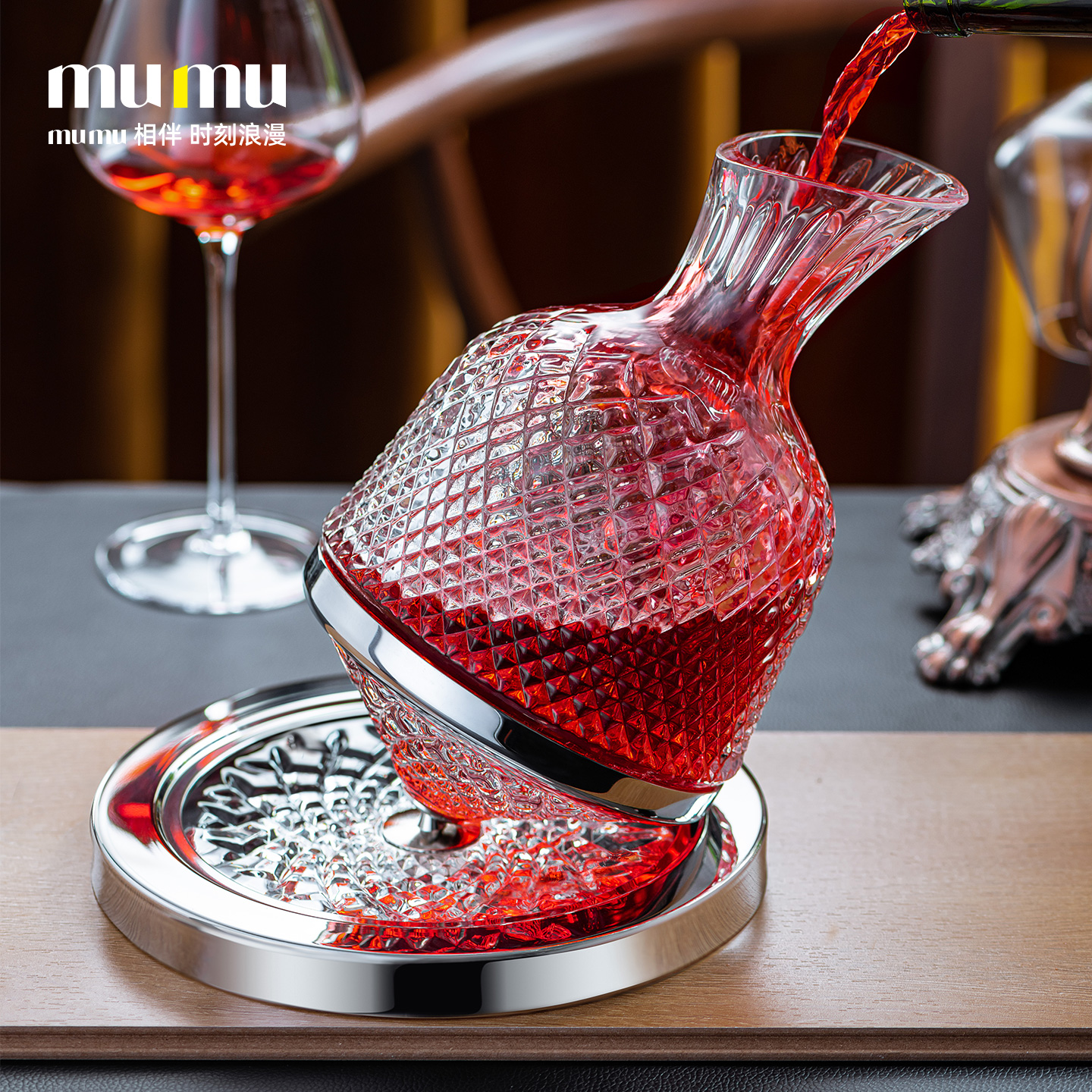 mumu正品 家用高级感不倒翁 水晶高端陀螺旋转红酒醒酒器酒杯套装