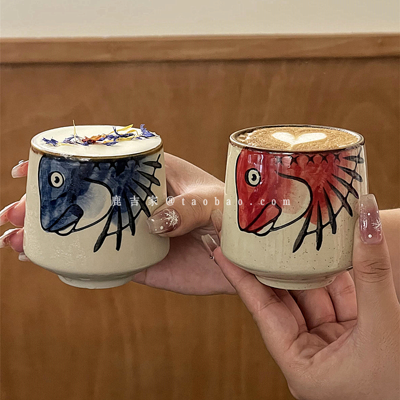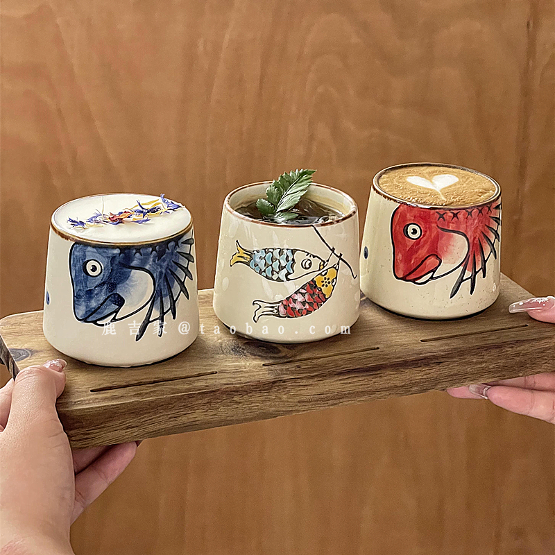 一豆三喝带孔木托盘陶瓷对杯冷萃杯套装 浓缩澳白咖啡杯拿铁杯 意式