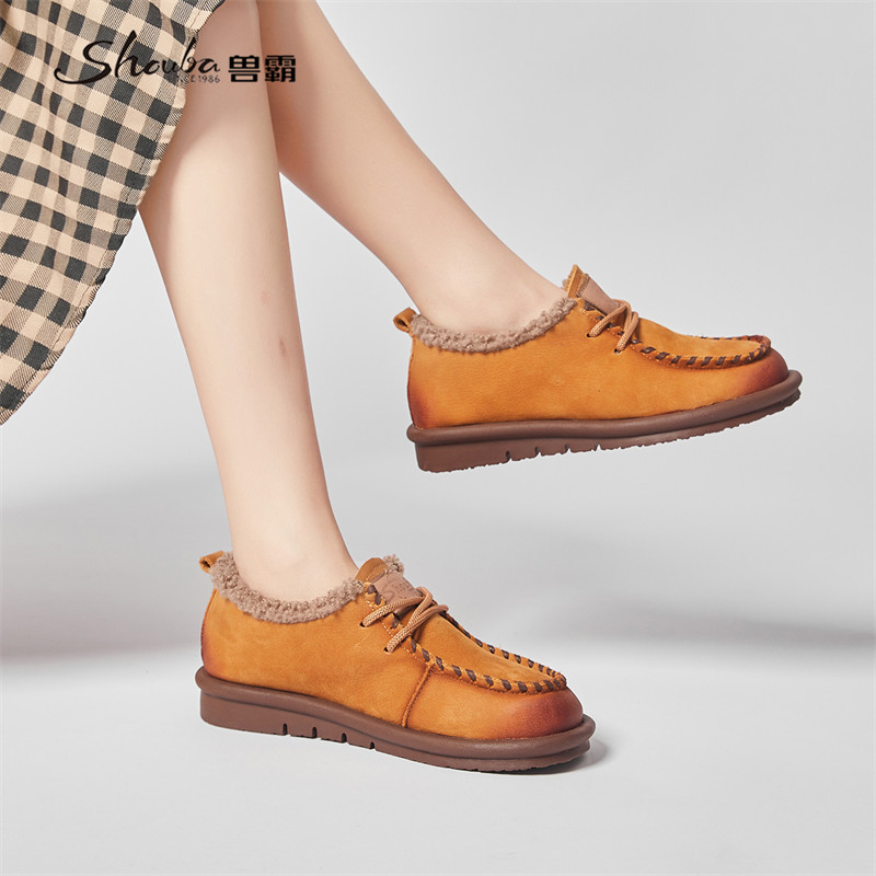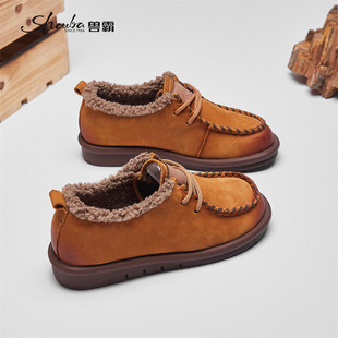 外穿平底复古软底勃肯大头一脚蹬棉鞋 秋冬季 女加绒乐福鞋 豆豆鞋 款