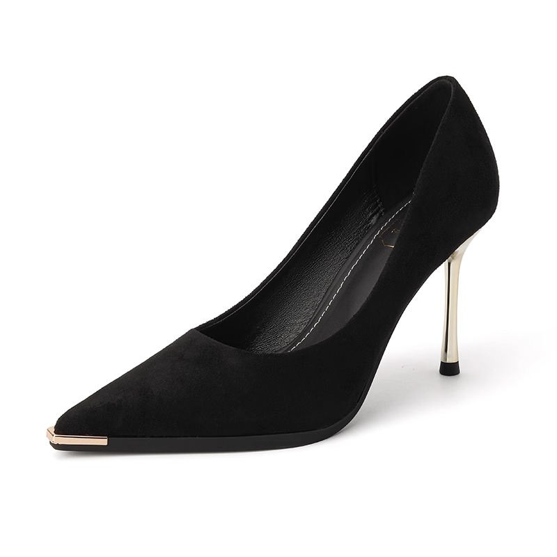 宽楦羊皮尖头细跟通勤浅口单鞋 大码 黑松露 秋冬女鞋 7or9黑色高跟鞋