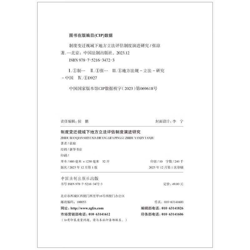 公法与治理 张琼 学术文库 中国法制出版 9787521634723 2023新正版 社 制度变迁视域下地方立法评估制度演进研究