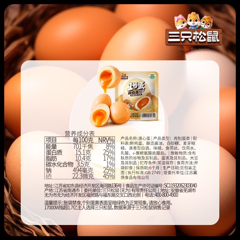 三只松鼠溏心蛋40gx4颗鸡蛋小吃香卤蛋铁蛋馋嘴 满99减30
