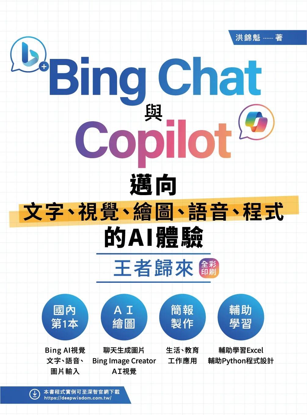 程序 洪锦魁 Chat与Copilot迈向文字 深智数位 全彩印刷 AI体验王者归来 语音 绘图 视觉 Bing 预售