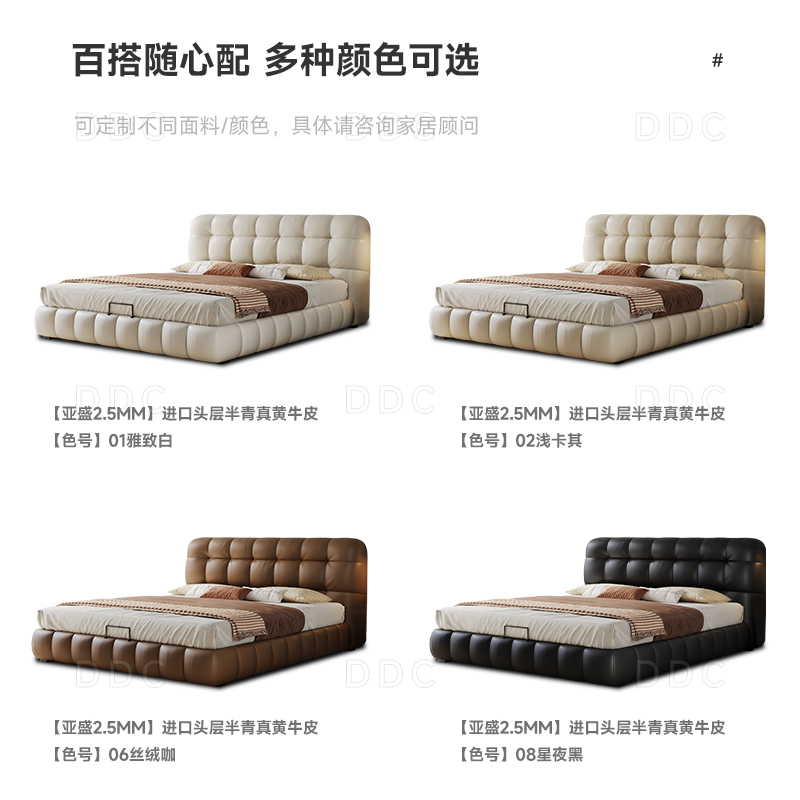 DDC意式 双人床1.8米大床婚床 极简泡芙真皮床现代简约软包2025新款