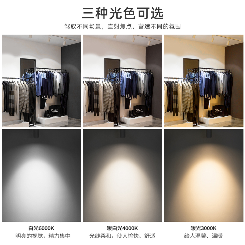 筒灯嵌入式 75mm家用led射灯天花灯三色客厅吊顶桶灯孔灯洞灯铜灯