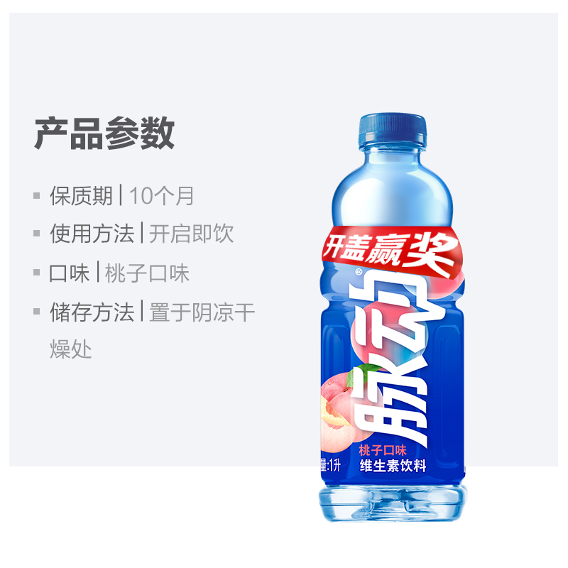 宋雨琦同款 12瓶维生素低糖大瓶出游做运动饮料 脉动桃子口味1L