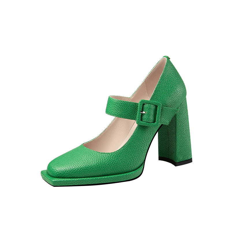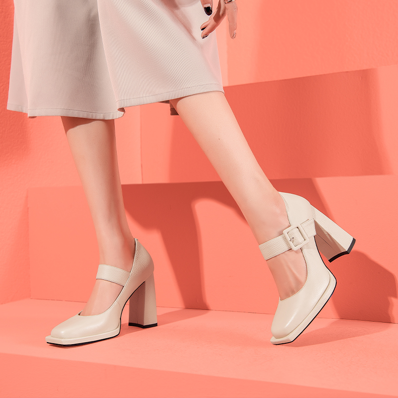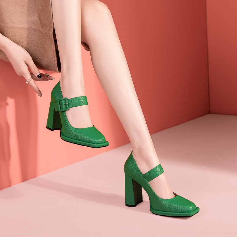 单鞋 羊皮浅口法式 千百度粗高跟鞋 异形跟职业通勤大码 静音系列