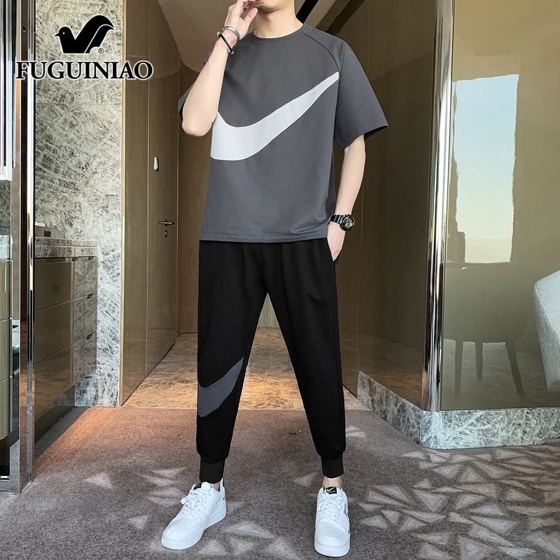 男士 运动套装 2025新款 冰丝t恤长裤 富贵鸟夏季 一套薄男装 休闲短袖
