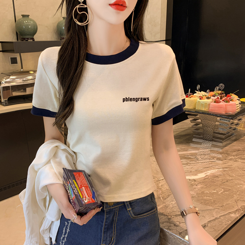 夏桖小众设计感小个子ins潮 2022年新款 正肩短款 上衣纯棉T恤女短袖