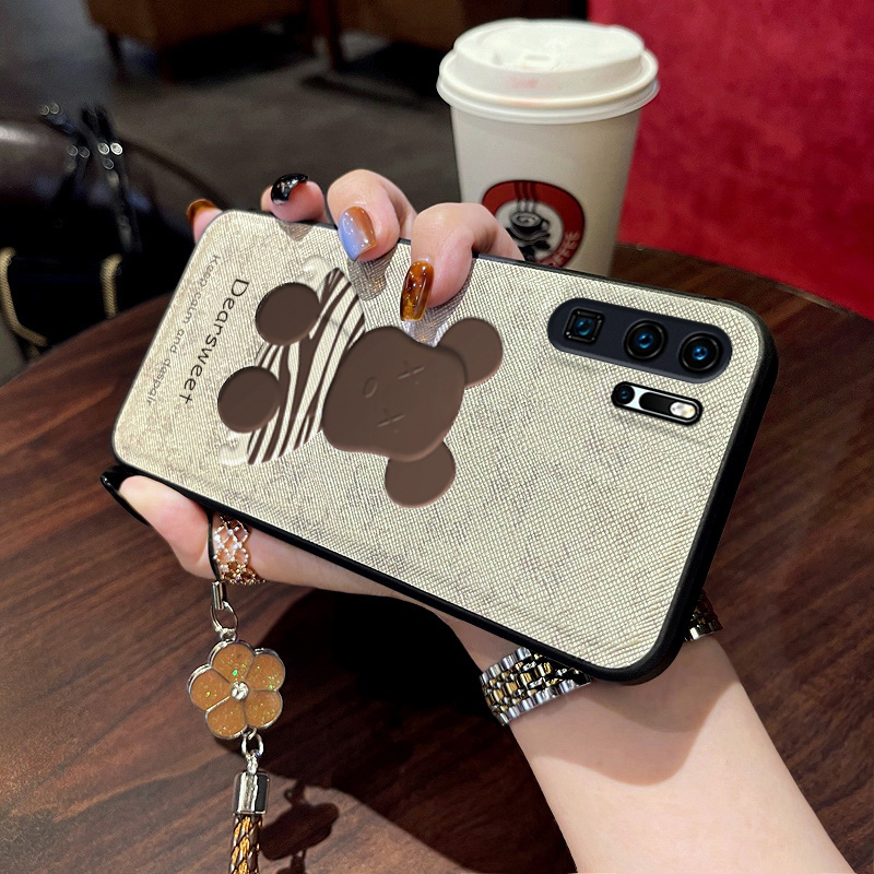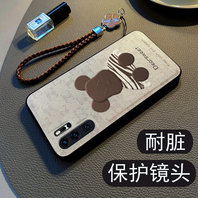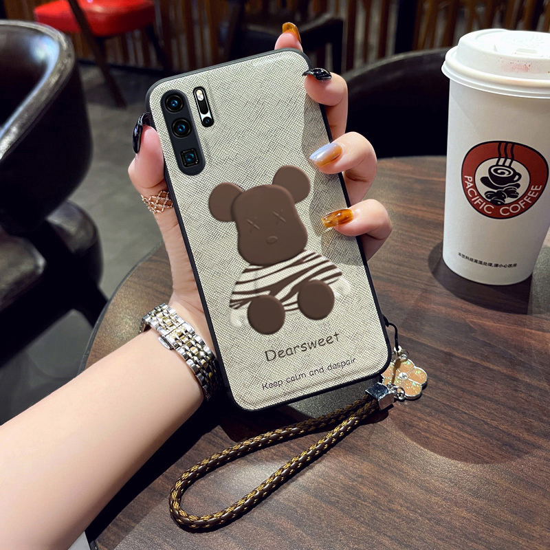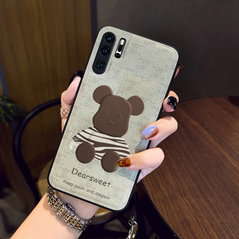 适用于华为p30pro手机壳新款 男高级感卡通暴力熊简约潮 p30保护套硅胶p20pro全包防摔布纹网红挂绳奢华p20女款