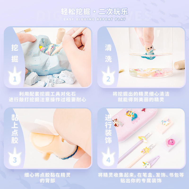 考古挖掘玩具挖宝石美人鱼女孩儿童恐龙化石寻宝公主宝藏海洋盲盒