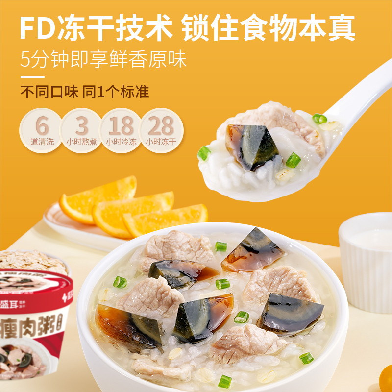 盛耳炖炖好冻干速食粥早餐方便食品皮蛋瘦肉粥饭冲泡即食免煮早饭