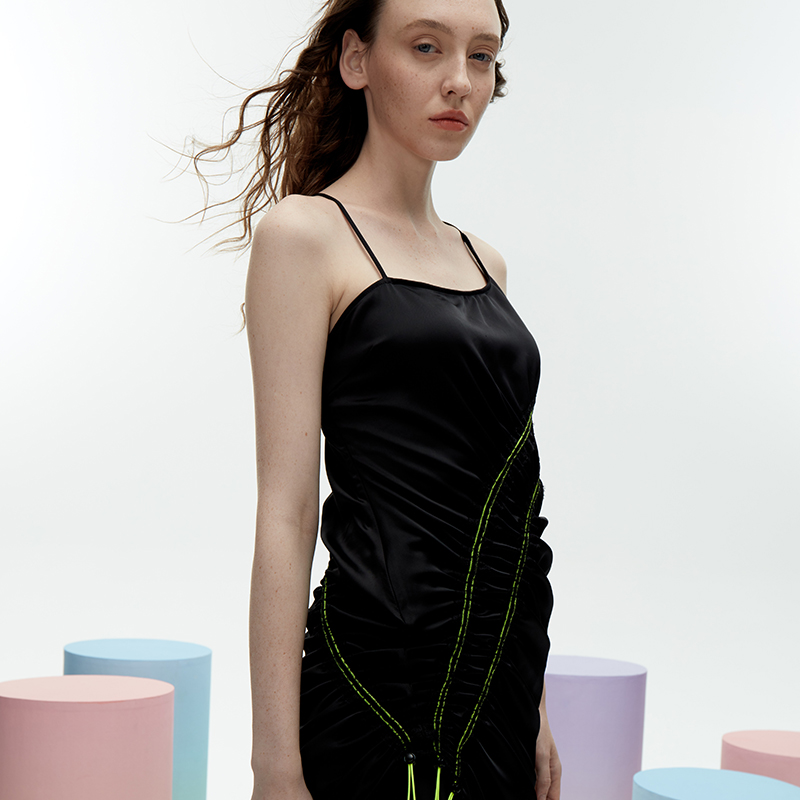 吊带黑色a字不规则连衣裙女夏 原创设计 ANGEL CHEN陈安琪