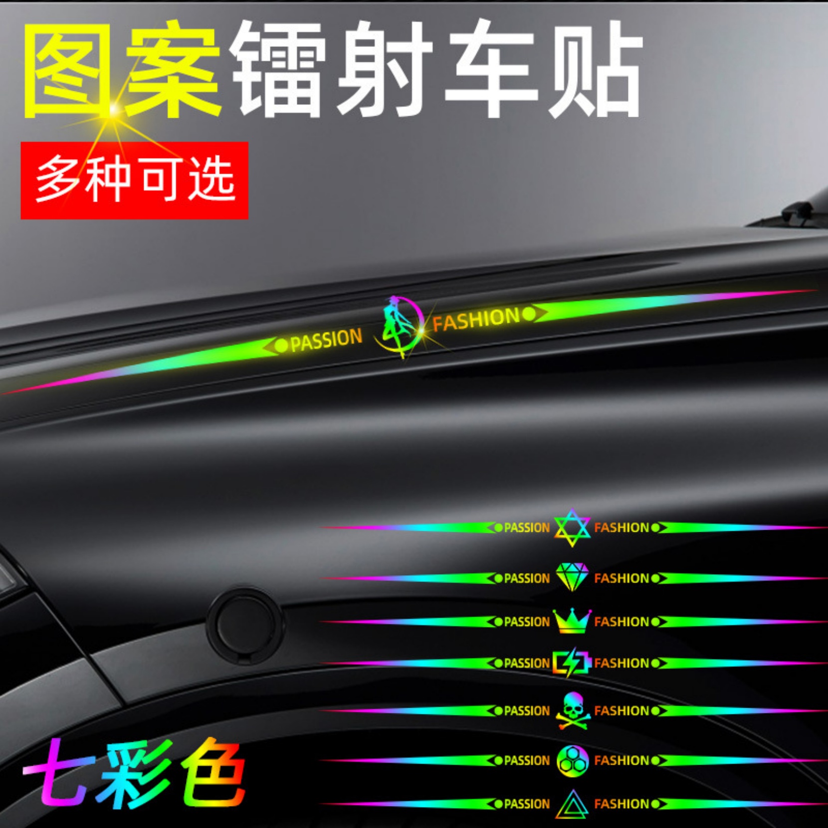 七彩镭射车身车门后档玻璃轮眉后翼车标遮挡划痕拉花装 饰汽车贴纸