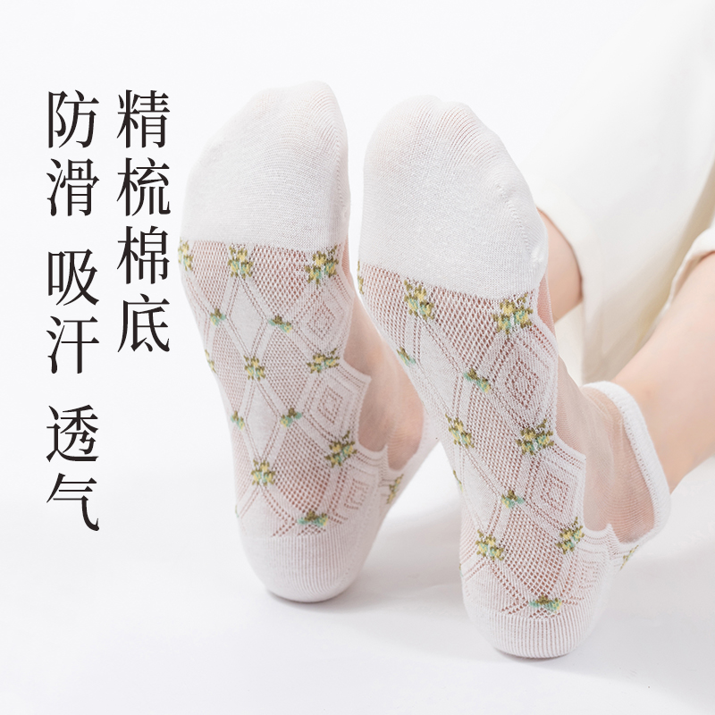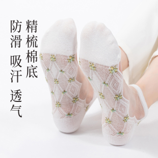 丝袜女夏季 浅口船袜 短袜防臭防滑棉底抗菌透气子水晶玻璃透明薄款