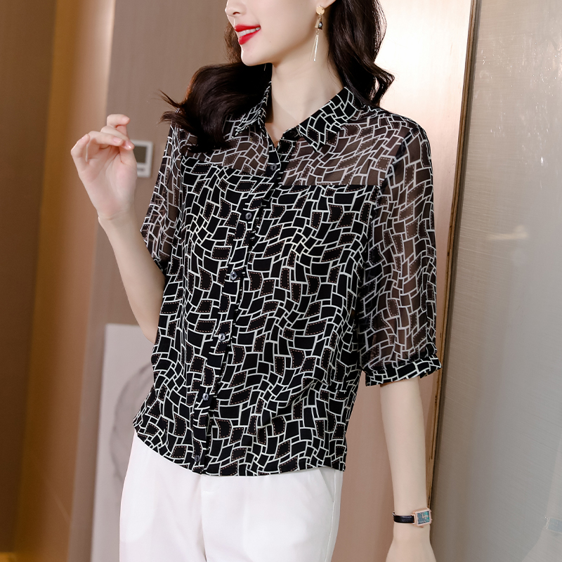 雪纺衬衫 妈妈装 女夏季 减龄洋气漂亮小衫 别致独特别致上衣 短袖 中袖