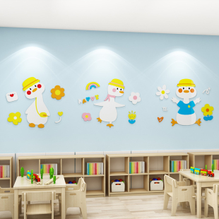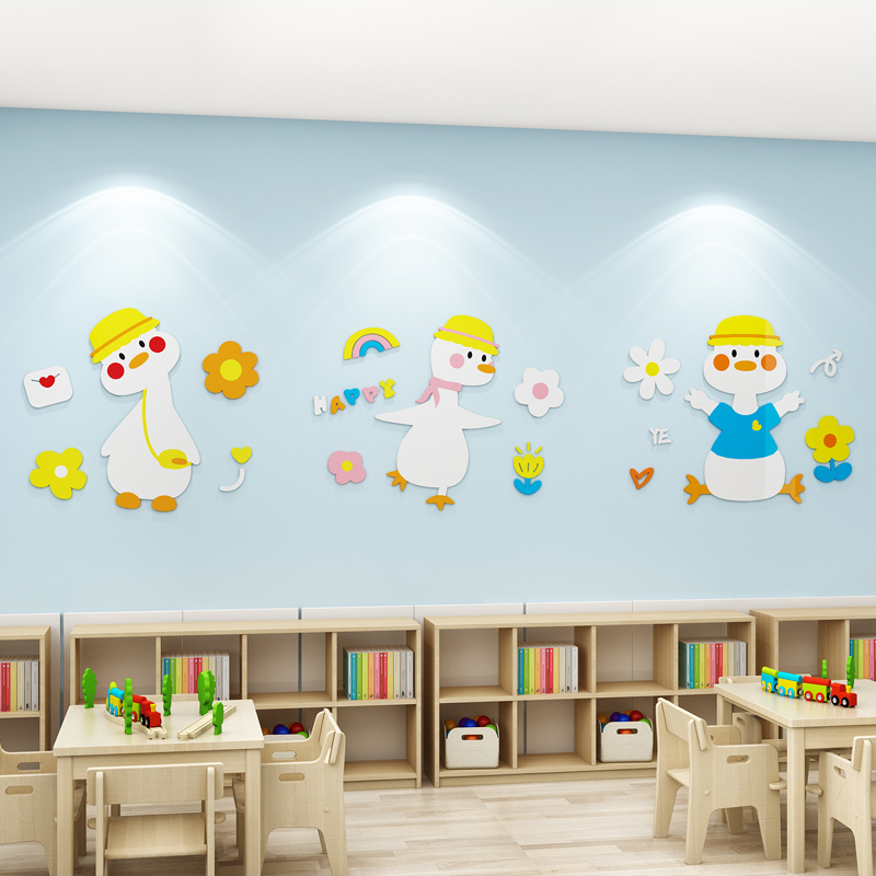 儿童房间布置卧室床头墙面装 饰男女孩可爱鸭子遮丑补洞墙贴纸立体