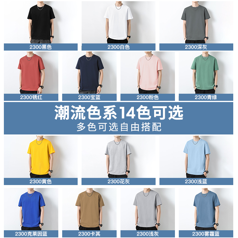 液氨长绒棉圆领体恤潮流宽松纯色全棉半袖 重磅纯棉t恤男短袖 夏季