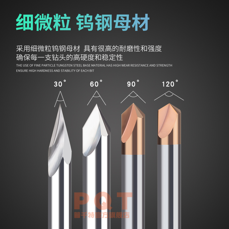 PQT钨钢倒角刀90度二齿涂层硬质合金三刃钢件铝用直槽定点铣刀45