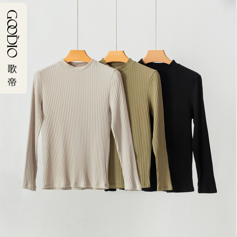 棉质莫代尔 打底女单件长袖 歌帝专柜春新专柜同款 宽罗纹小高领时尚