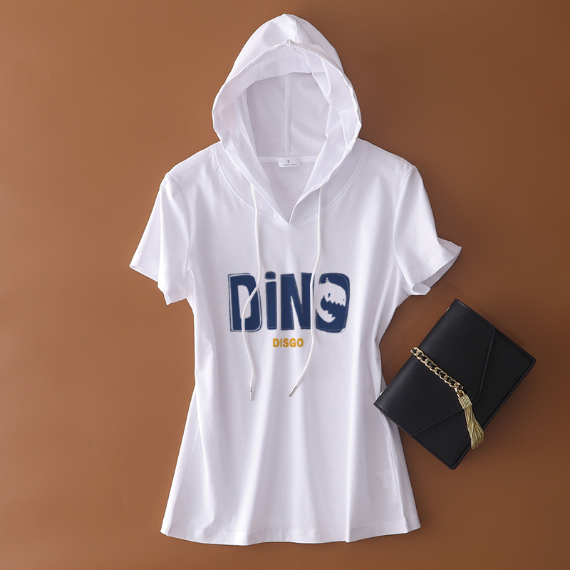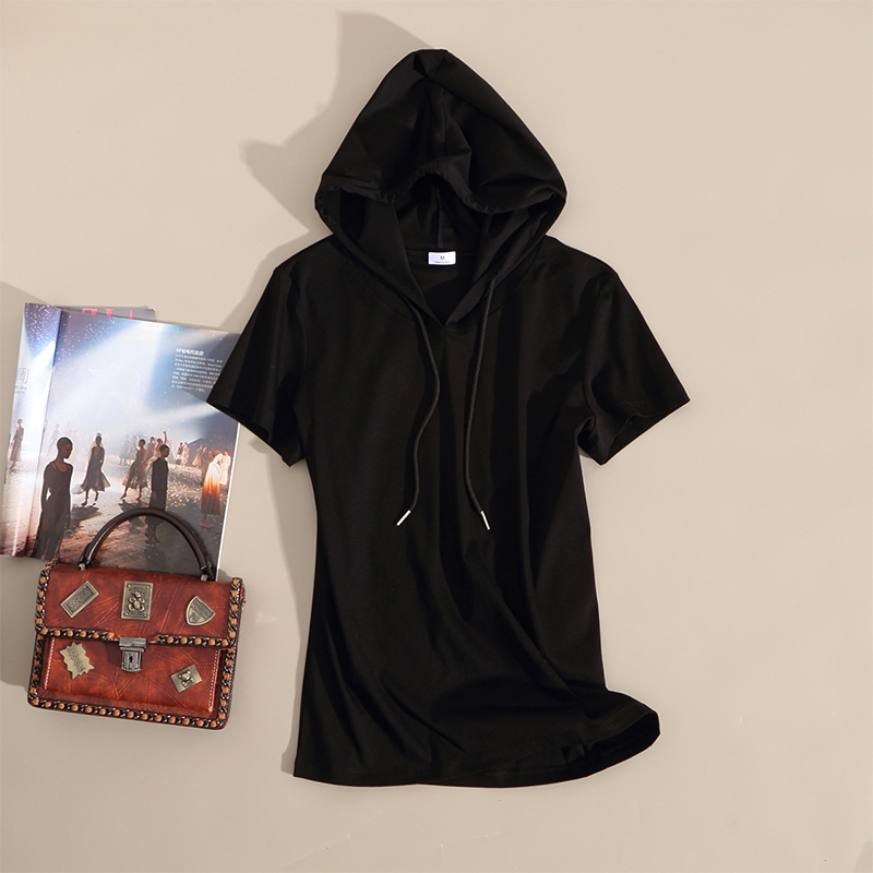 爆款 新款 宽松小众设计感连帽上衣 t恤女2025夏季 日系穿搭白色短袖