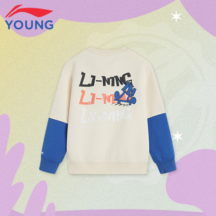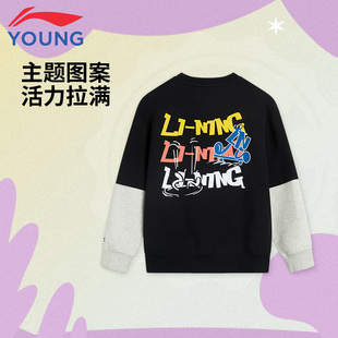 亲肤运动上衣童 新品 李宁儿童卫衣套头圆领无帽青少年男款 25秋季