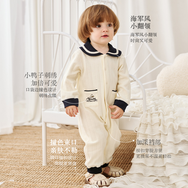 modomoma婴儿衣服秋装 男宝宝英伦绅士洋气百天周岁连体衣爬服哈衣