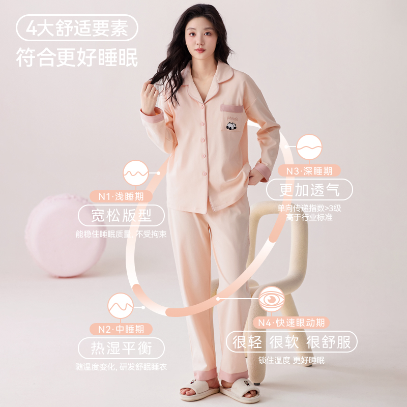 自带胸垫家居服套装 婷美纯棉睡衣女款 宽松大码 春秋款 2025新款