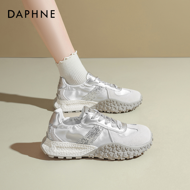 绸缎水钻厚底休闲小白鞋 达芙妮薄款 春季 女2025新款 子 芭蕾风德训鞋