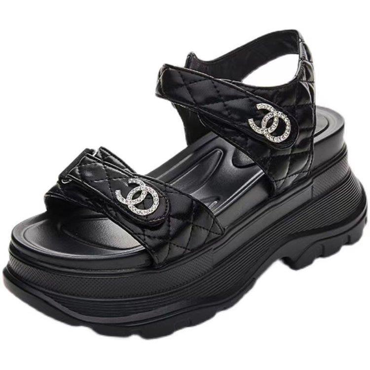 厚底网红百搭增高水钻露趾沙滩鞋 爆款 新款 女2025年夏季 魔术贴凉鞋