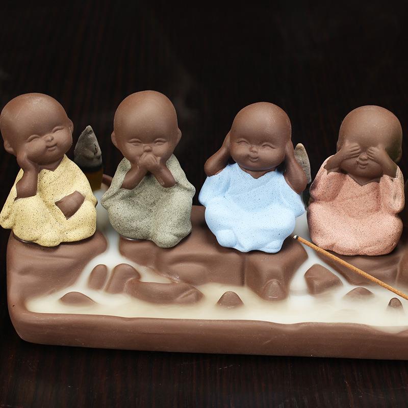 紫砂倒流香炉金玉满堂 茶道香薰炉线香插 四不小和尚陶瓷创意摆件