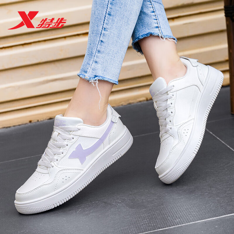 板鞋 特步男女鞋 秋季 革面休闲鞋 空军一号运动鞋 小白鞋 双11预售